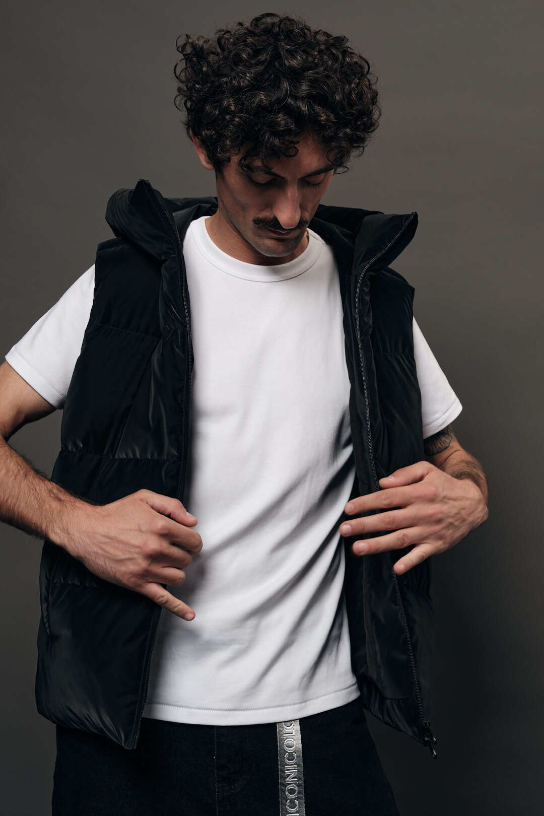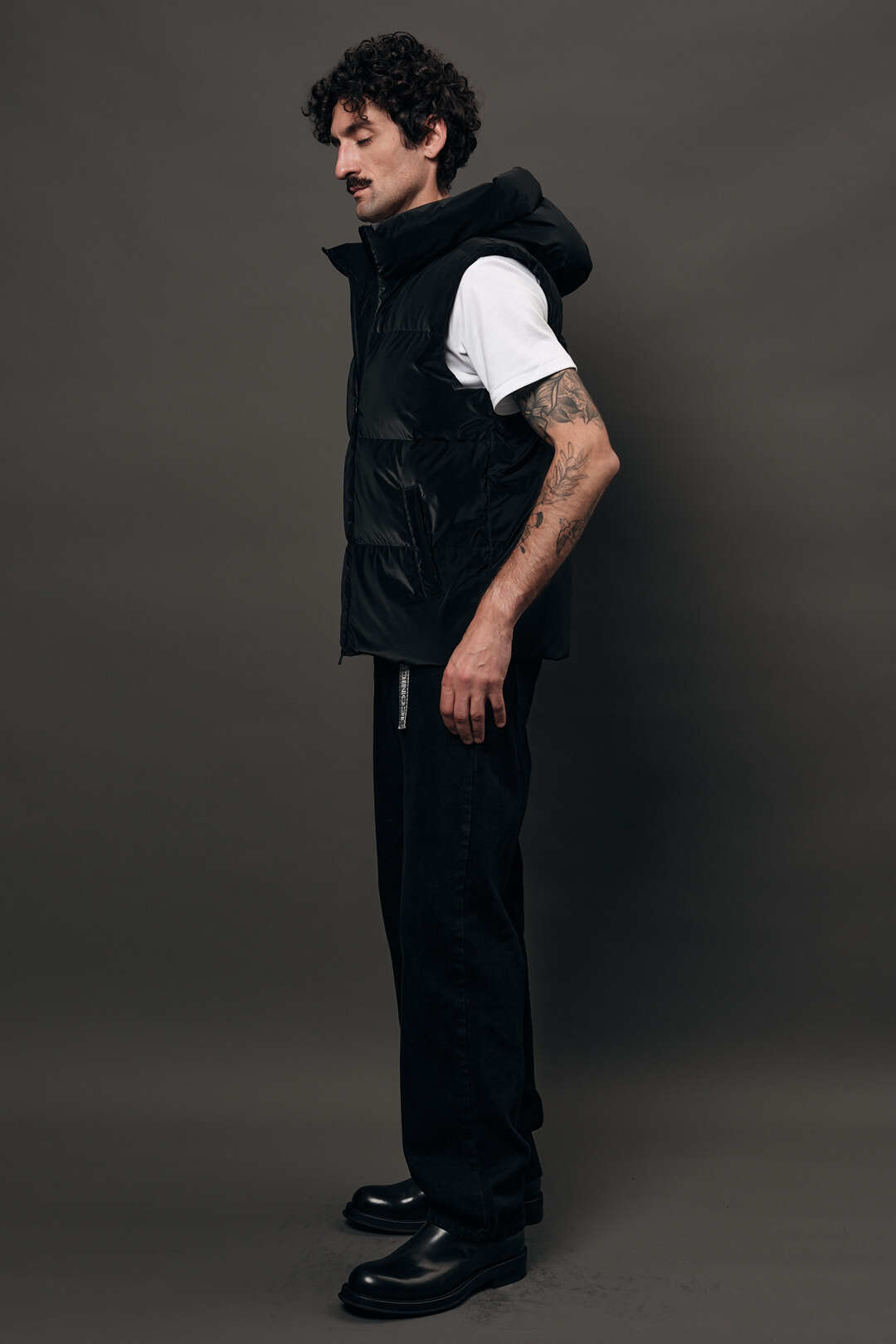 Матовая плащёвка лёгкой плотности соединяется с хлопковым утеплителем, формируя материал, который сохраняет тепло и остаётся невесомым. Сдержанная эстетика и природный комфорт превращаются в надёжную основу бренда.