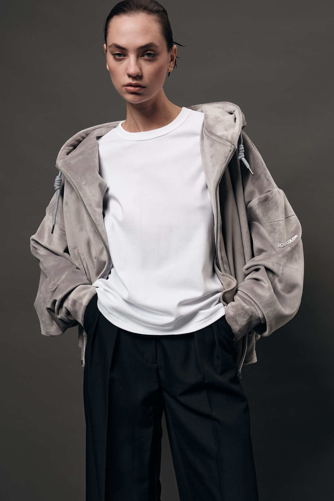 BODY / MegraTech: Плюш и мягкий вельвет в рубчик образуют тактильный и уютный дуэт. Серый оттенок делает материал спокойным и универсальным. Мягкость, превращённая в форму.