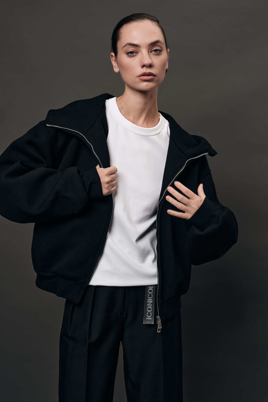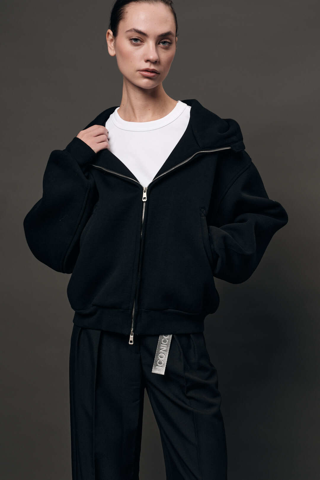 Плюш и плотный хлопок создают комфортный и прочный материал. В чёрном цвете он выглядит монументально и строго. Надёжность, воплощённая в ткани.