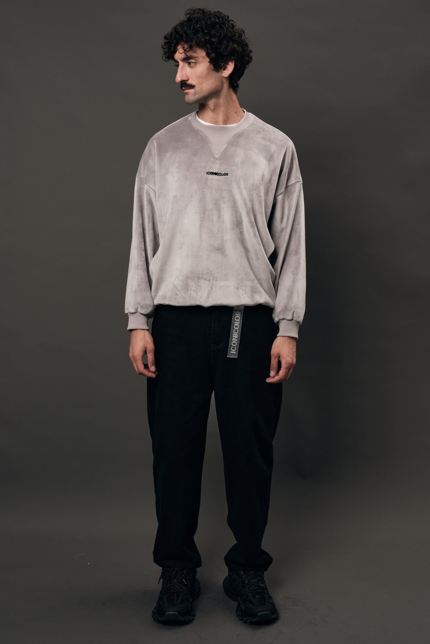 Плюш и мягкий вельвет в рубчик образуют тактильный и уютный дуэт. Серый оттенок делает материал спокойным и универсальным. Мягкость, превращённая в форму.