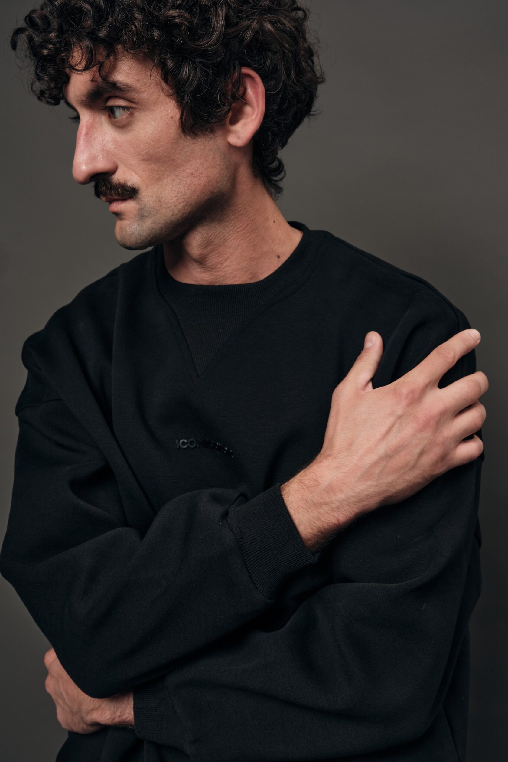 BODY / MegraTech: Нежность плюша и структурная диагональ создают прочный и лаконичный образ. В чёрном цвете ткань выглядит монументально. Сдержанность, превращённая в силу.