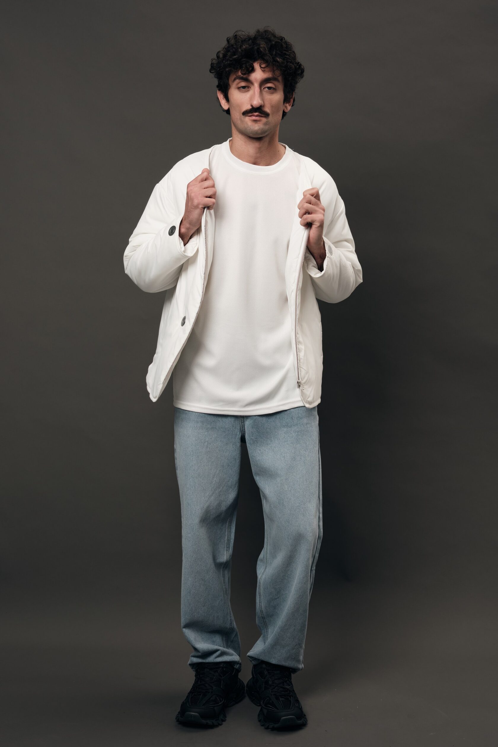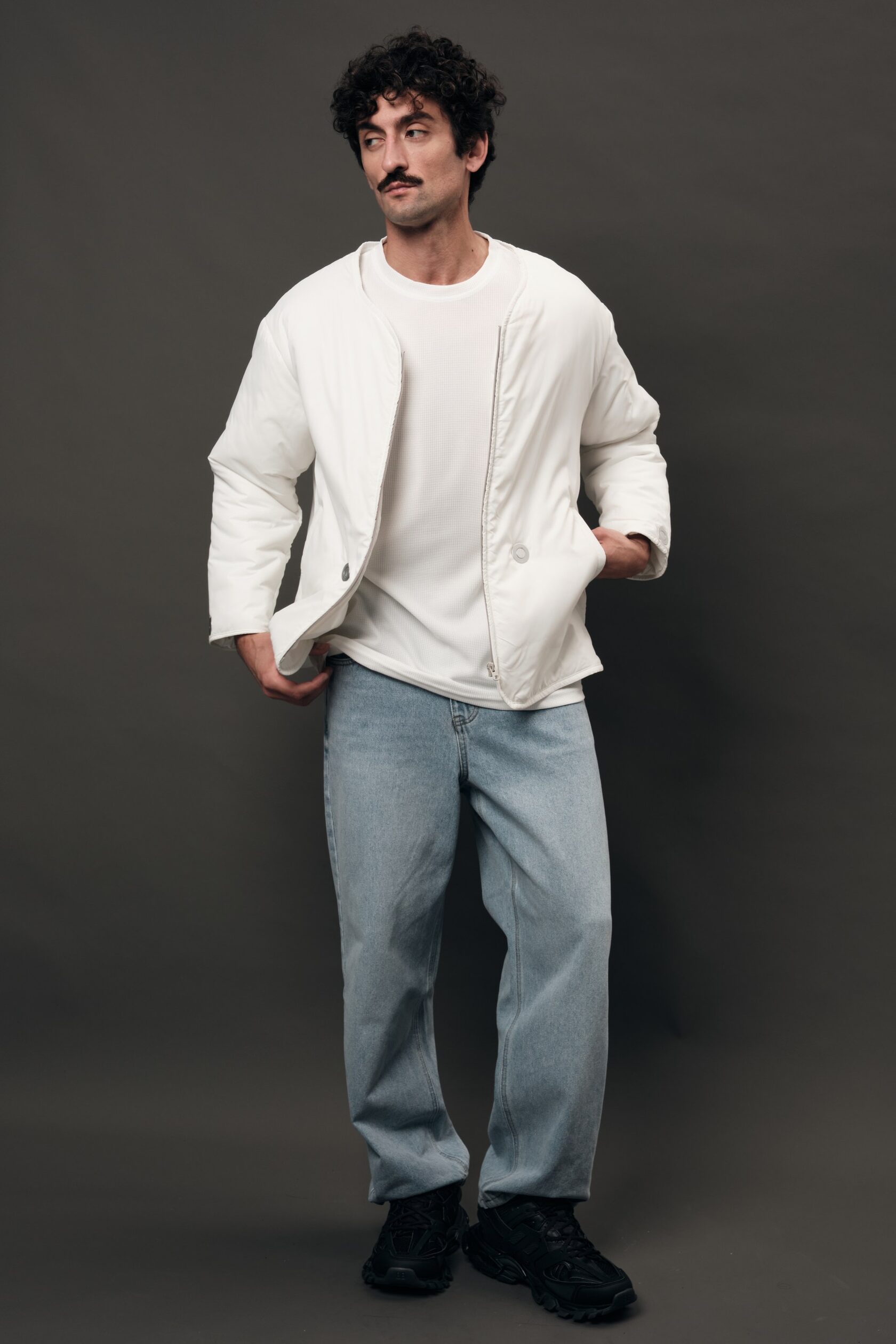 Матовая плащёвка лёгкой плотности соединяется с хлопковым утеплителем, формируя материал, который сохраняет тепло и остаётся невесомым. Сдержанная эстетика и природный комфорт превращаются в надёжную основу бренда.
