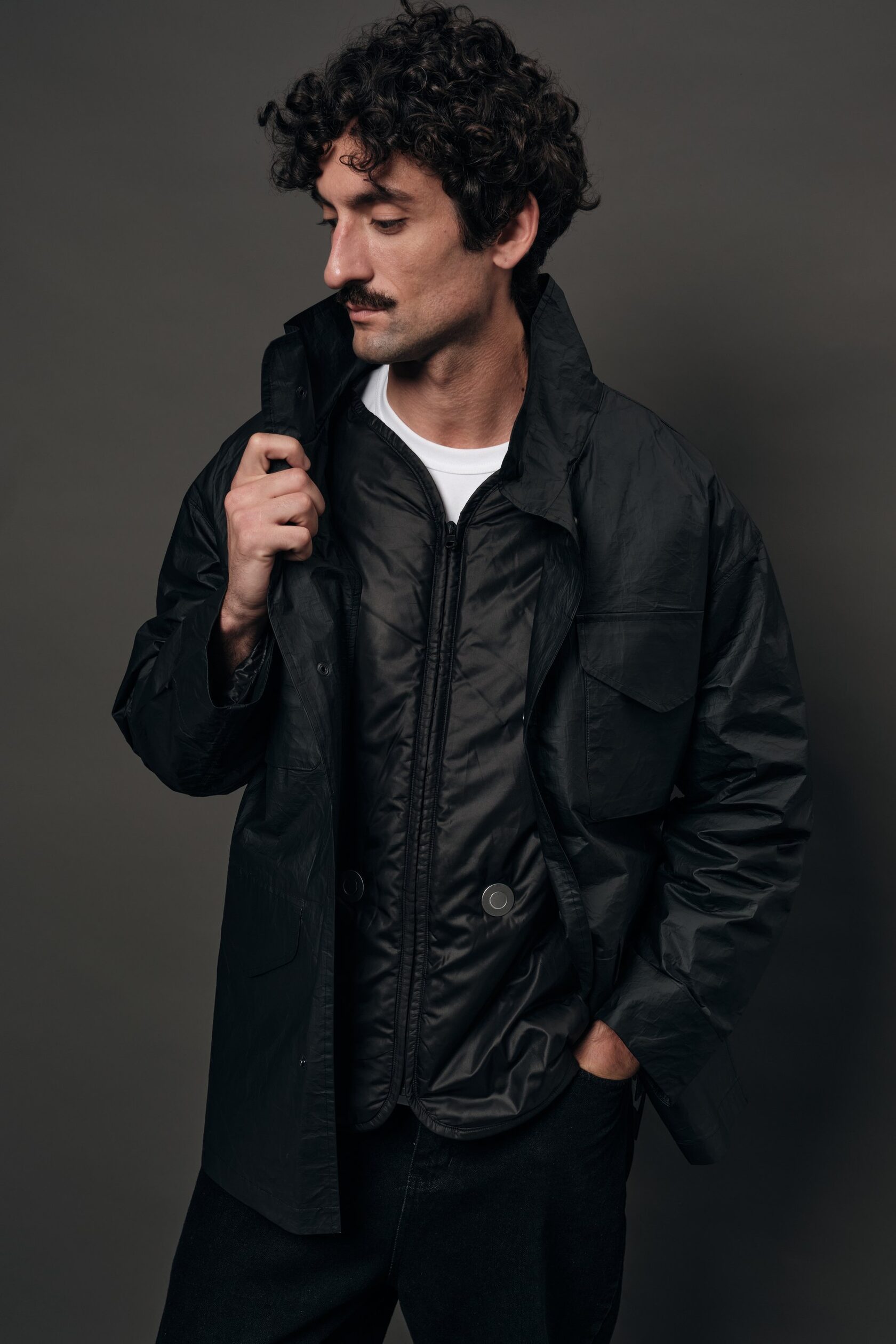 BODY Tyvek® от DuPont — премиальная ткань, известная своей лёгкостью, прочностью и влагозащитой. Фактура с эффектом бумаги создаёт узнаваемый и современный образ, который выделяет бренд мгновенно. Айдентика, выраженная в материале.