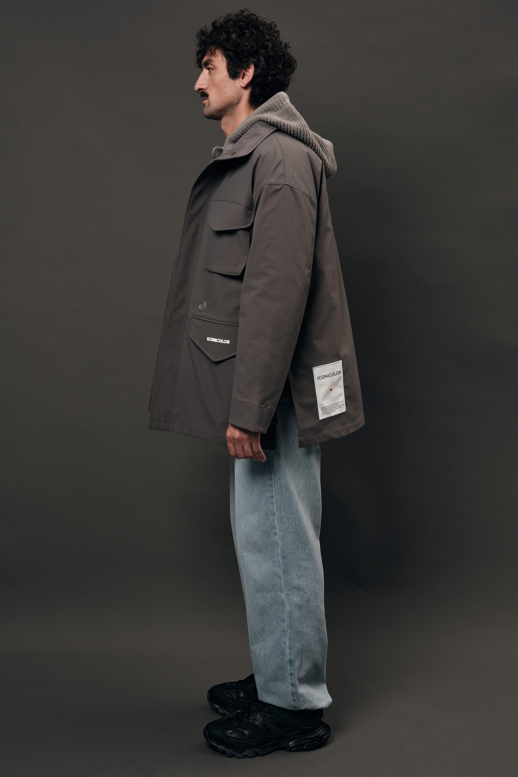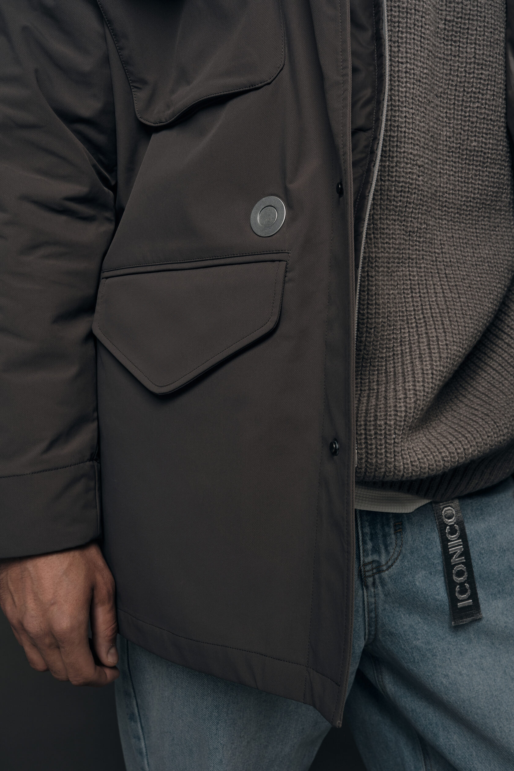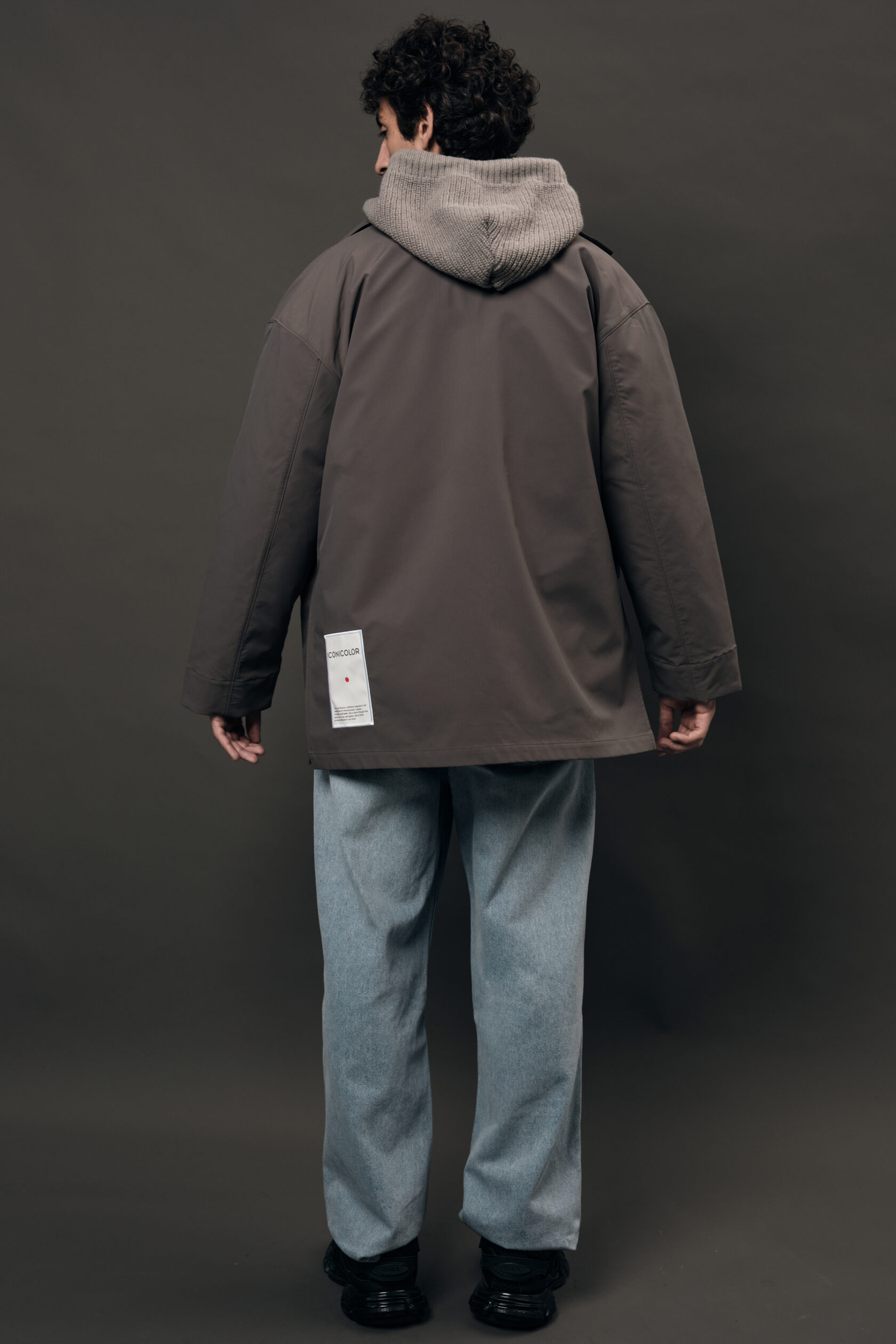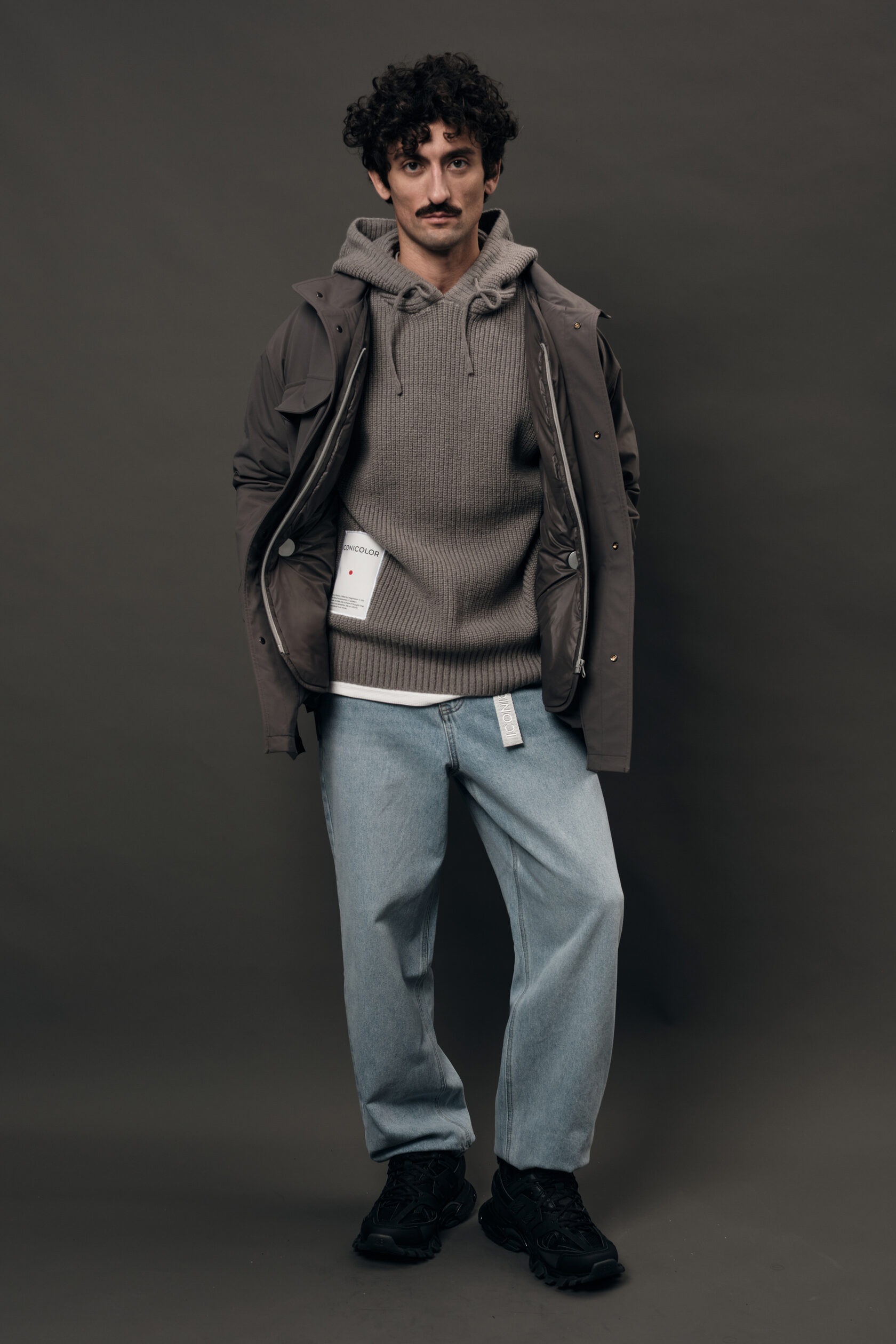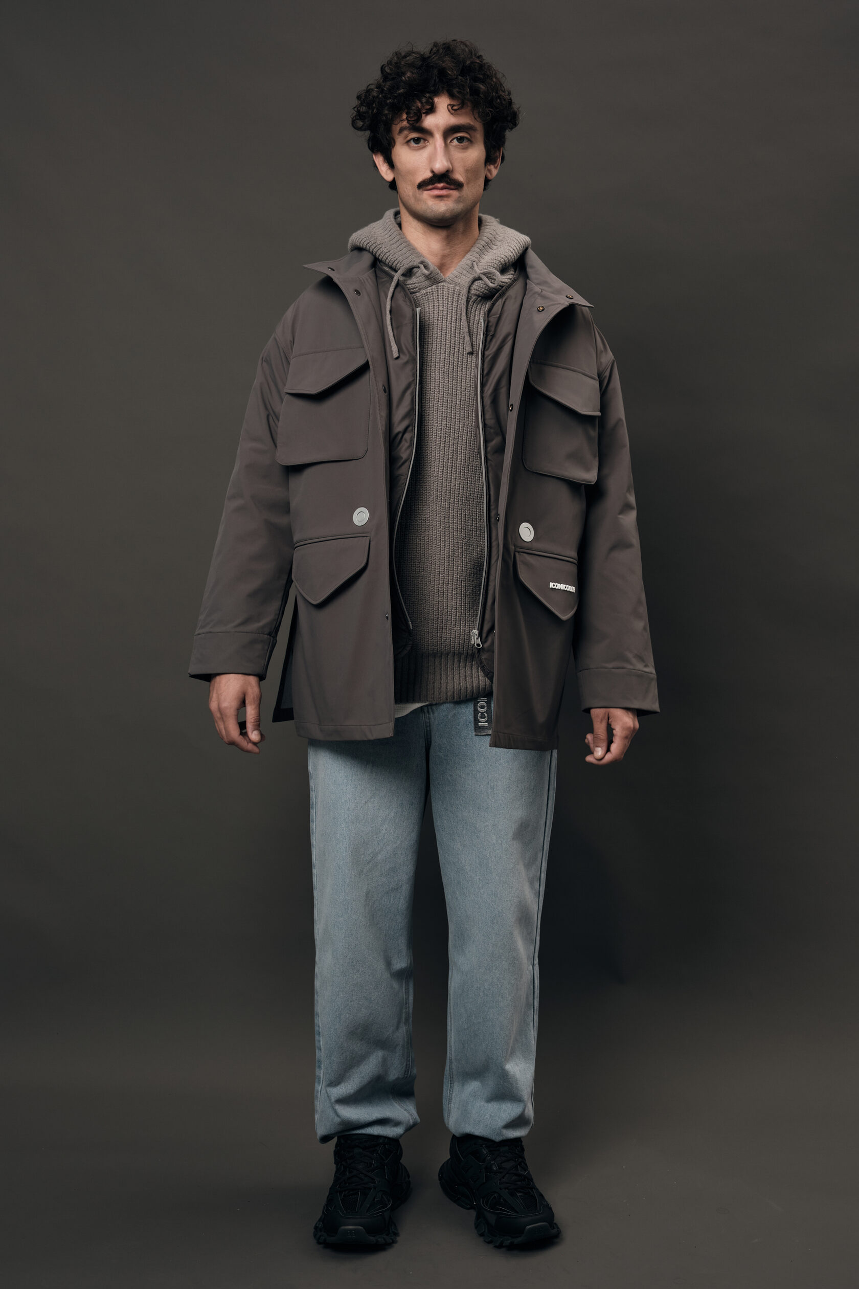 Хлопок и фактурный таслан «ромбик» создают технологичное решение. Серый цвет делает материал строгим и надёжным. Геометрия, в которой рождается айдентика.