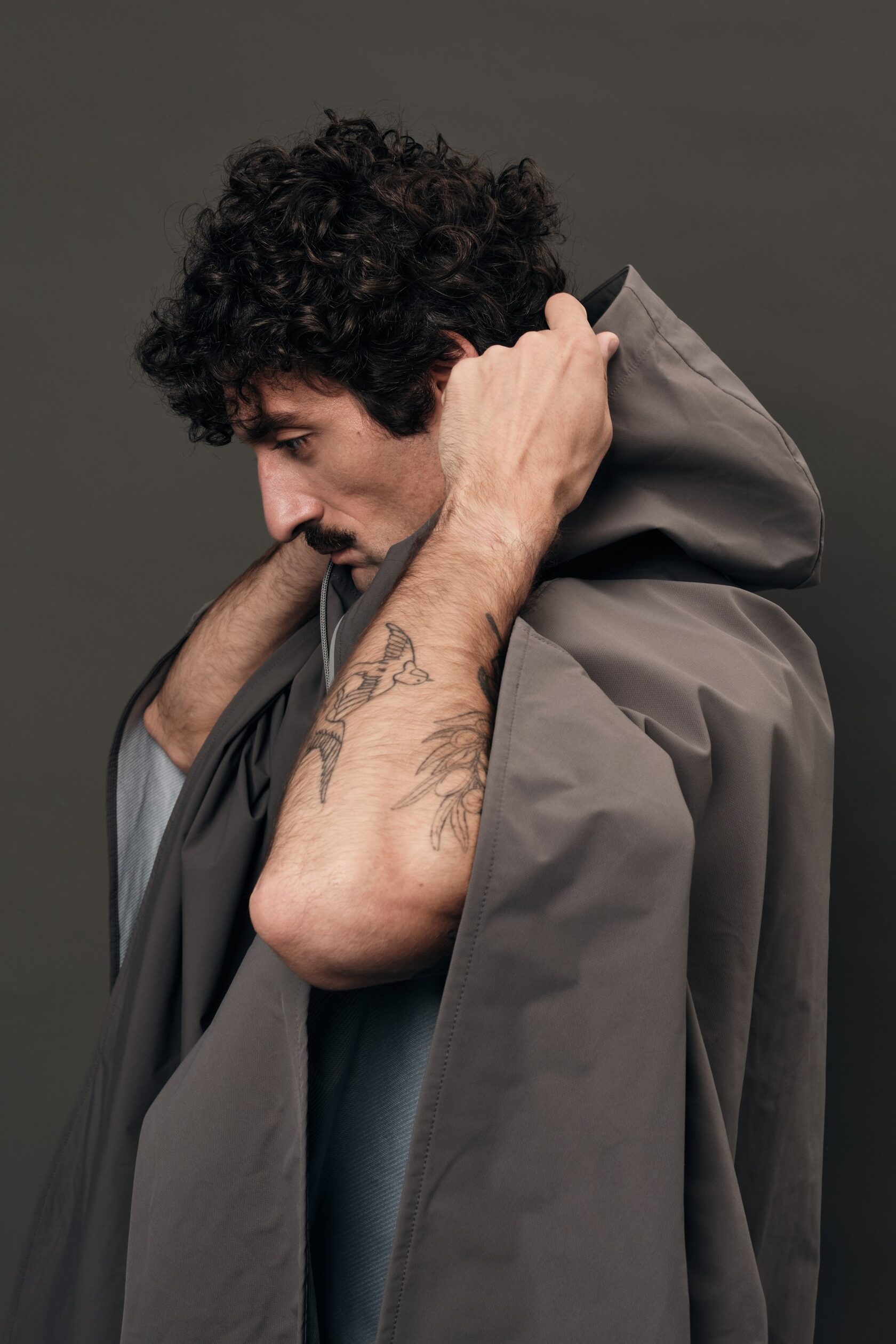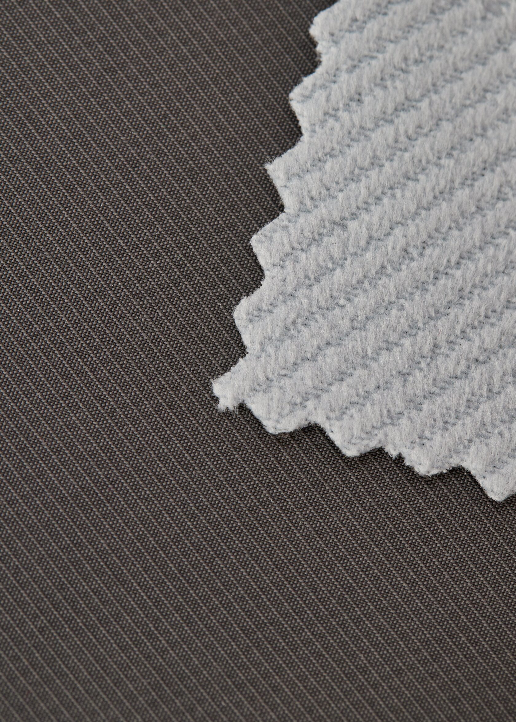 Хлопок и фактурный таслан «ромбик» создают технологичное решение. Серый цвет делает материал строгим и надёжным. Геометрия, в которой рождается айдентика.