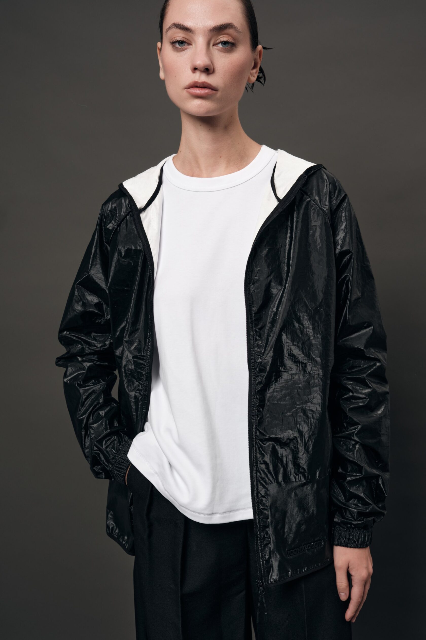BODY Tyvek® от DuPont — премиальная ткань, известная своей лёгкостью, прочностью и влагозащитой. Фактура с эффектом бумаги создаёт узнаваемый и современный образ, который выделяет бренд мгновенно. Айдентика, выраженная в материале.