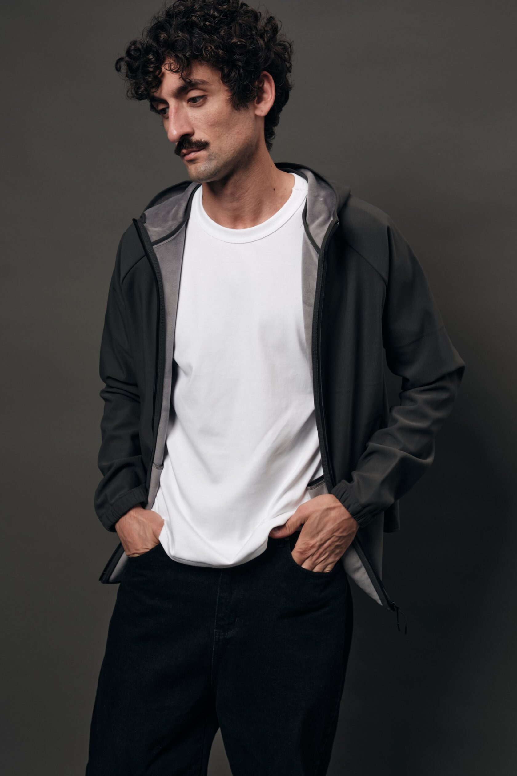 BODY / MegraTech: Мягкий плюш соединён с эластичной дюспо, создавая пластичный и комфортный материал. Серый оттенок подчёркивает универсальность. Гибкость, которая работает на бренд.