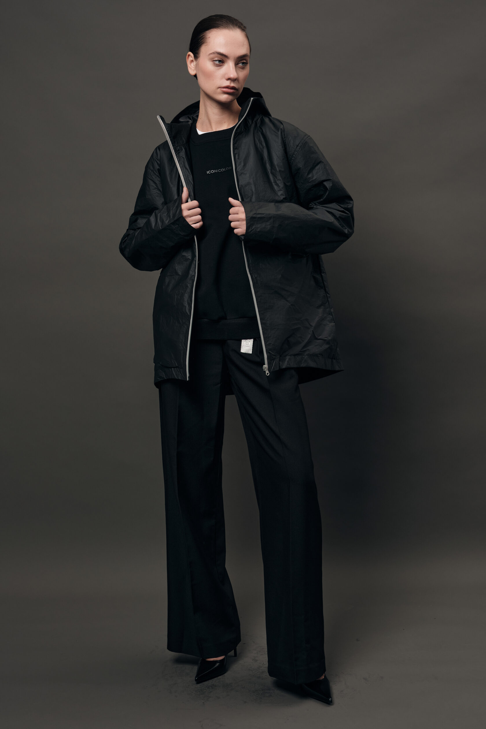 BODY Tyvek® от DuPont — премиальная ткань, известная своей лёгкостью, прочностью и влагозащитой. Фактура с эффектом бумаги создаёт узнаваемый и современный образ, который выделяет бренд мгновенно. Айдентика, выраженная в материале.