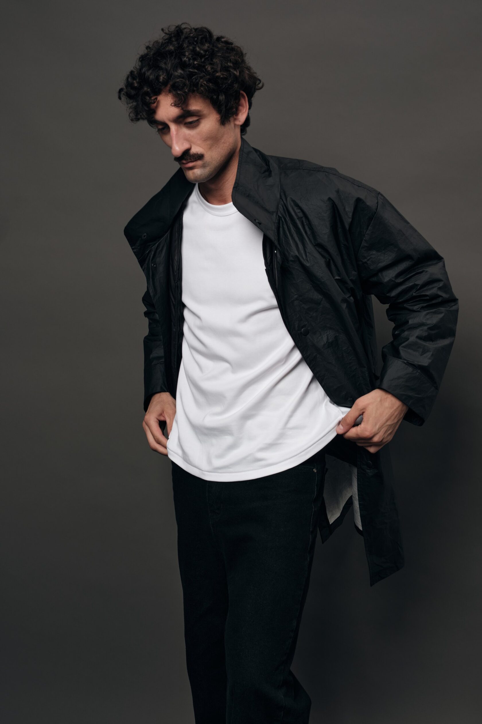 BODY Tyvek® от DuPont — премиальная ткань, известная своей лёгкостью, прочностью и влагозащитой. Фактура с эффектом бумаги создаёт узнаваемый и современный образ, который выделяет бренд мгновенно. Айдентика, выраженная в материале.