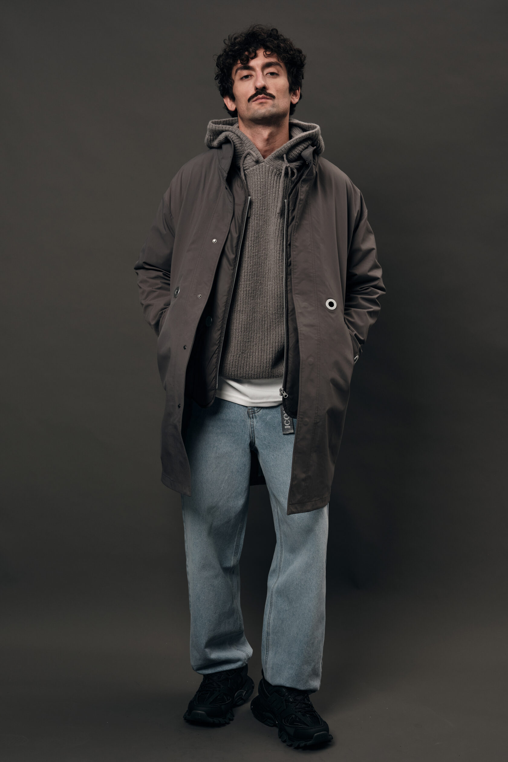 BODY / MegraTech: Хлопок и фактурный таслан «ромбик» создают технологичное решение. Серый цвет делает материал строгим и надёжным. Геометрия, в которой рождается айдентика.